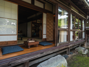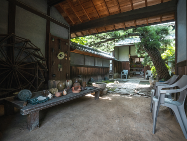 築160年の古民家でアサノヤ床の間の掛軸を着想として、和室、門屋、壁、庭などアサノヤという建物全体を「軸」として作品を展示します。