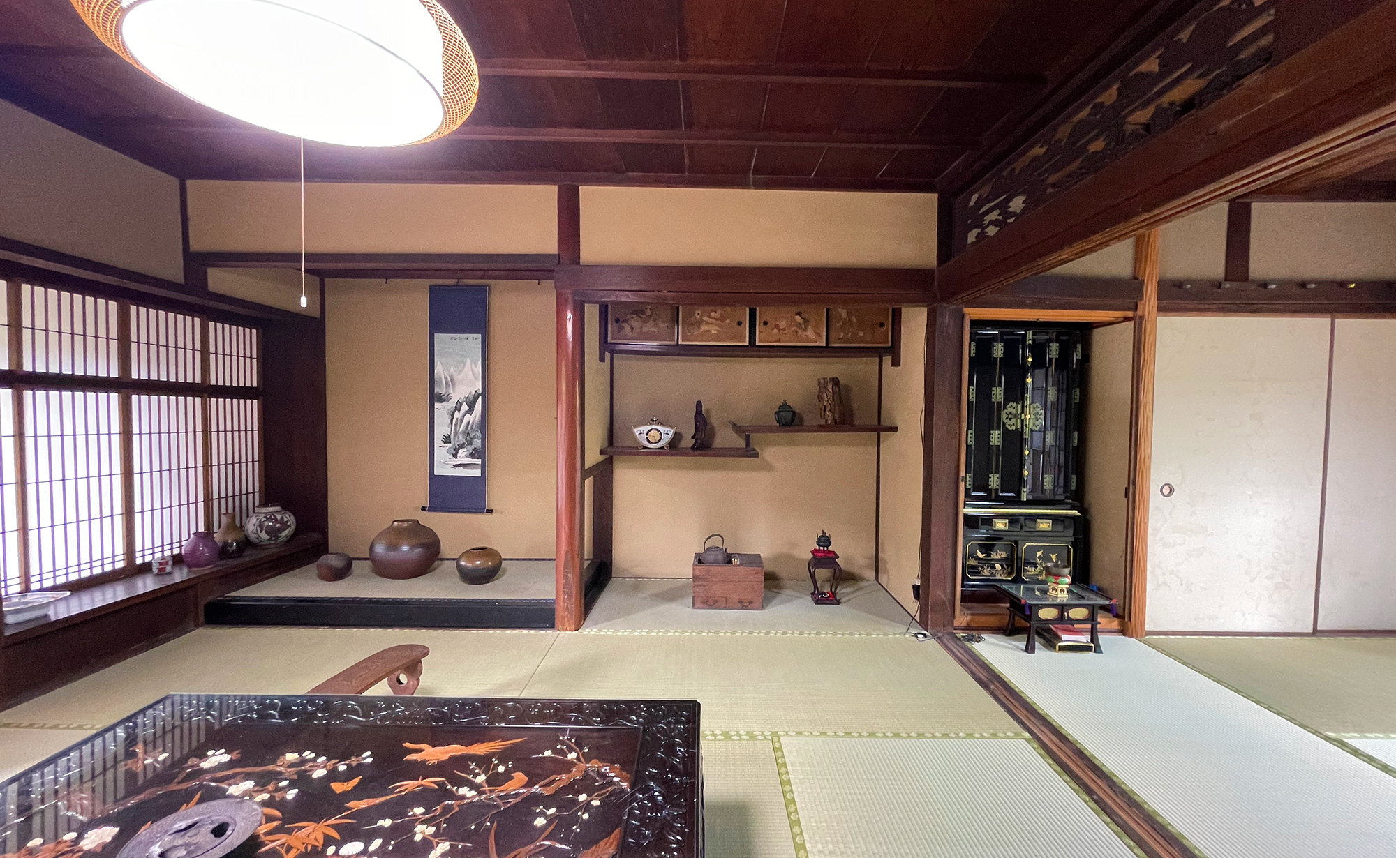 戦火をくぐり抜けてきた大正15年の日本家屋は、美しいツヤを持つ立派な梁や柱、室内には井戸、想像以上に広い裏庭と、豊かな暮らしを思わせる造りです。