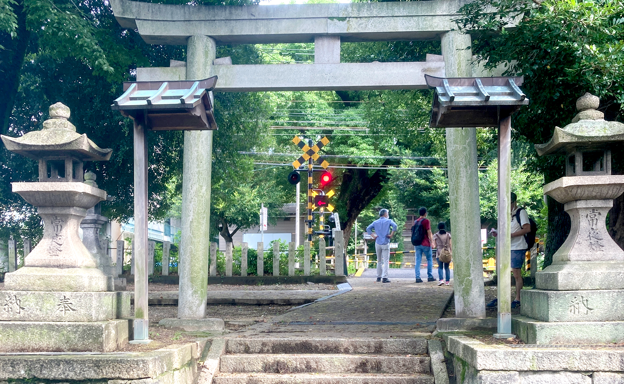 鳥居を潜ろうとした目線の先には、カンカンカン…と鳴り響く踏切が。