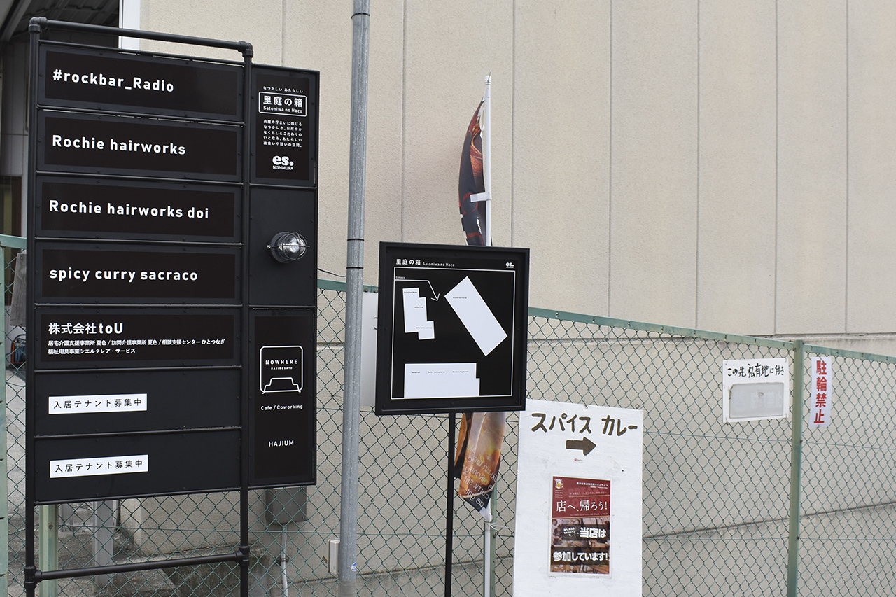 「里庭の箱」にはカフェ兼コワーキングスペース、ギャラリー、美容室、カレー屋さんがあり、駅徒歩1分で様々な人が行き交います。
