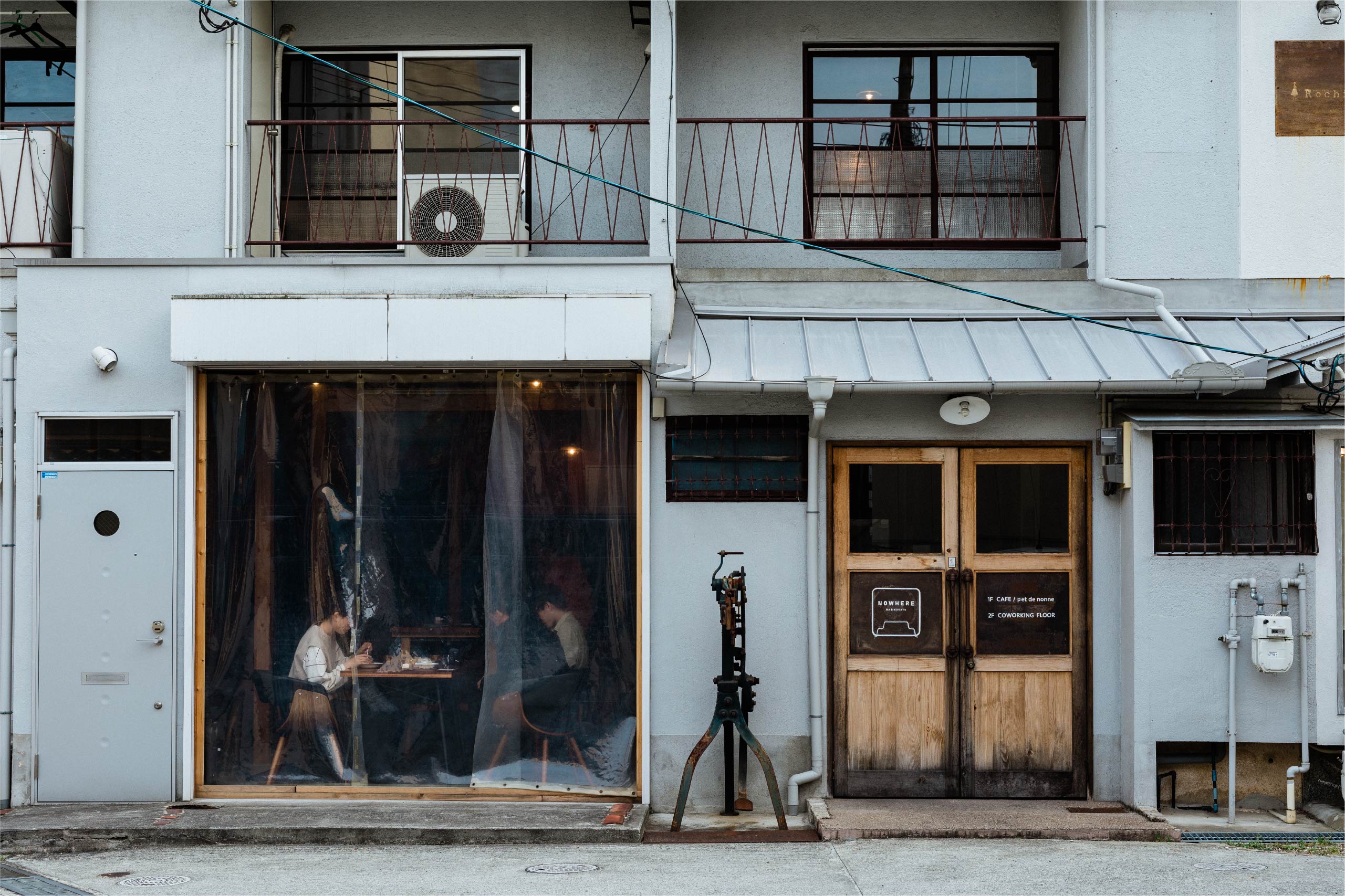 なつかしさを感じる長屋の佇まい。おだやかなくらし、こだわりのいとなみ。新たな出会い、そして憩いの空間。駅前に昔ながらの文化住宅の長屋が軒を連ねる一角、そこは古民家を改装した集合エリア「里庭の箱」と呼ばれています。