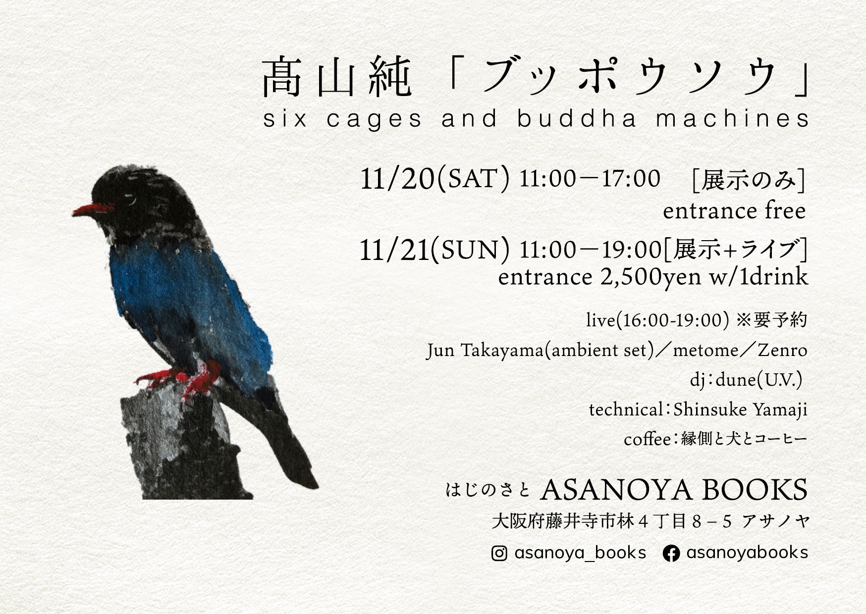 11/20(土)11/21(日)高山純 「ブッポウソウ」展示+ライブ